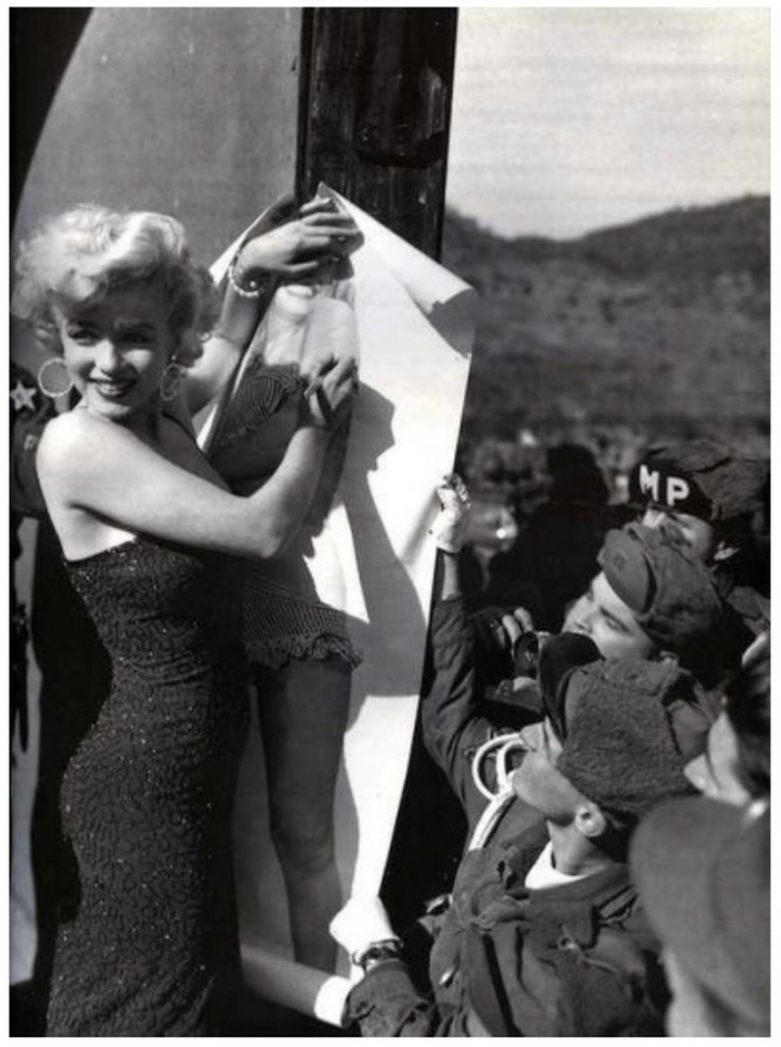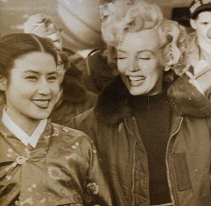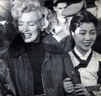 유엔군 위문차 대구 동촌비행장을 방문한 마릴린 먼로의 모습.