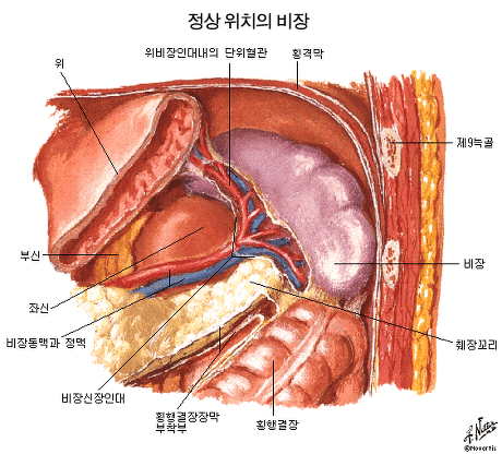 비장은 면역세포의 기능을 돕고, 우리 몸에 있는 세균이나 항원 등을 걸러내줍니다.
