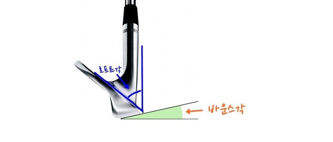 웨지를 선택할 때 로프트각과 또 항상 함께 보는 것이 '바운스 각'인데요~ 바운스 각은 클럽 헤드의 솔 (바닥)부분과 지면과의 각도를 말하는데요, 바운스 각은 아이언과 웨지 클럽에 0도부터 15도 이상까지 분류가 되어 있으며 클럽 헤드에 로프트각도와 항상 함께 써있답니다.