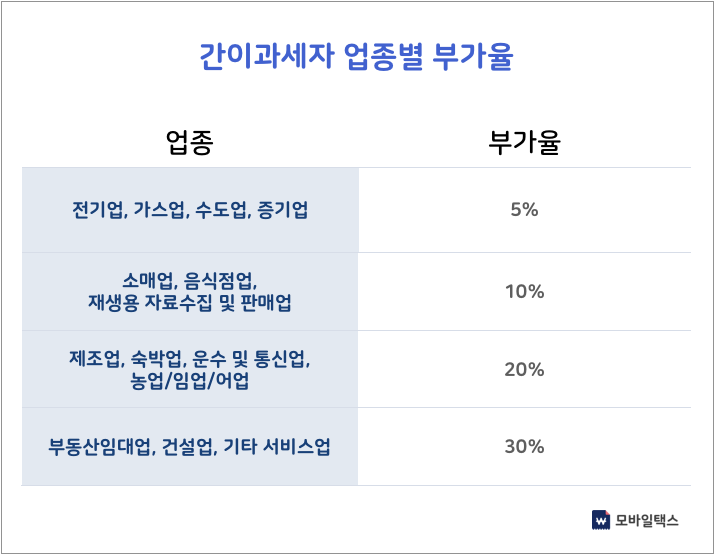간이과세자의 업종별 부가율은 아래 표를 확인하세요.