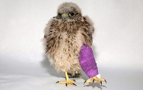 (다리 부러진 연약한) 새를 손으로 살포시 받들다