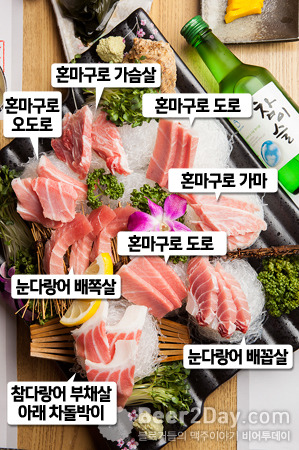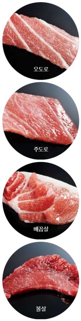 그리고 그 옆에 주도로는 뱃살과 등살 중간쯤에 위치한 부위로 지방이 서려있어서 맛이 고소합니다.