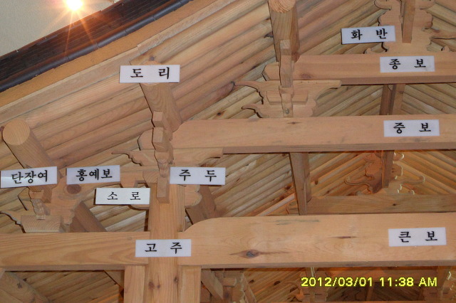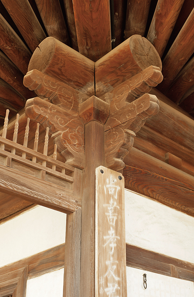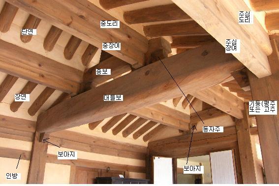 목조 건축물에서, 기둥과 들보가 연결되는 직각 부분에 끼워, 연결 부분을 보강해 주는 널조각. 양봉(樑奉).