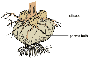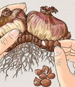과거에는 주로 이 방법을 이용하여 왔으나 바이러스 발생이 쉬워서 바람직하지 않고 단지 모본이 완전히 바이러스병에 이병되어 있지 않았으면 이 방법도 구근생산에 이용할 가치가 있다.