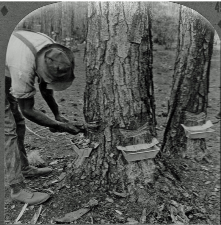 Chipping a turpentine tree in Georgia (US), circa 1906-20