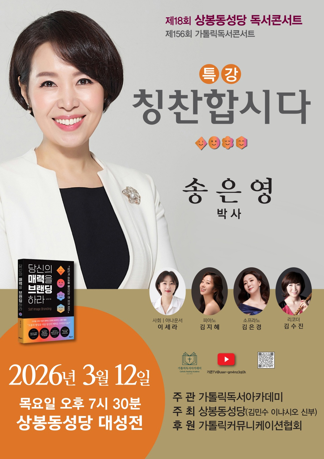 #제156회 #가톨릭독서콘서트 #가톨릭독서아카데미 #송은영박사 #사순특강 #칭찬합시다 #당신의매력을브랜딩하라 #상봉동성당 #제18회 #한국가톨릭독서아카데미 #가톨릭커뮤니케이션협회 #신자 #비신자 #일반누구나 #무료