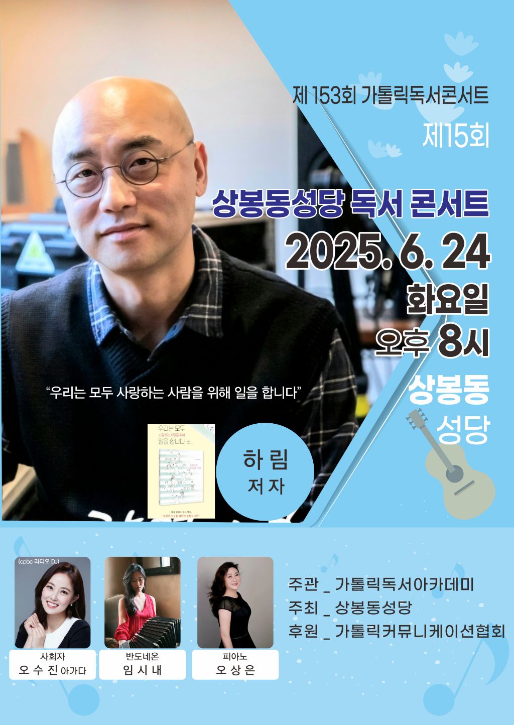 제153회 가톨릭독서콘서트 상봉동성당 작성자박미카엘|작성시간25.07.03|조회수73 목록 댓글 0 글자크기 작게가 글자크기 크게가 가수 하림 (우리는 모두 사랑하는 사람을 위해 일을 합니다) 다음검색 현재 게시글 추가 기능 열기 북마크 공유하기 신고 센터로 신고 댓글 댓글 0 댓글쓰기 답글쓰기 댓글 리스트
