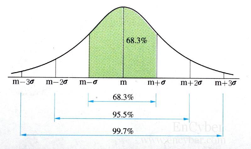 그림 1 의 녹색으로 칠해진 부분은 1시그마 안에 데이터가 존재할 확률을 나타낸것입니다.
