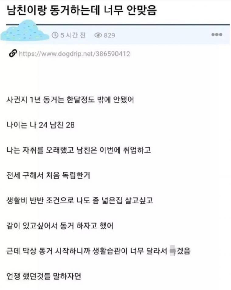 남친 이랑 동거 하는데 너무 안 맞음