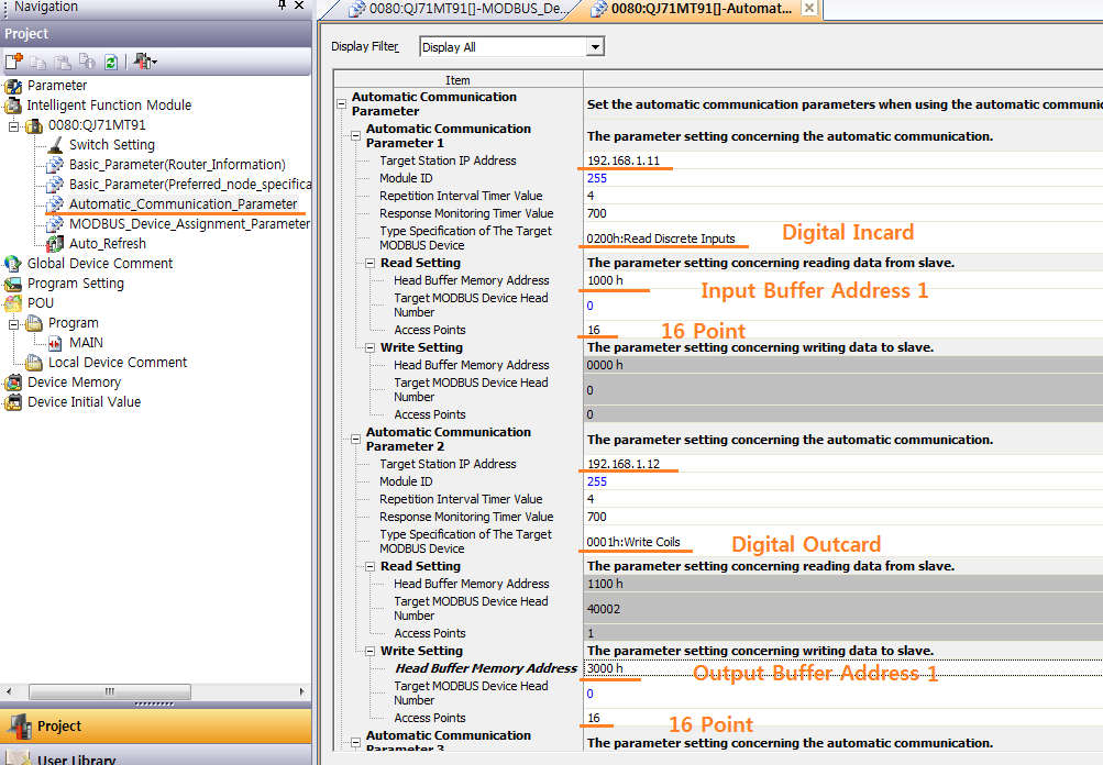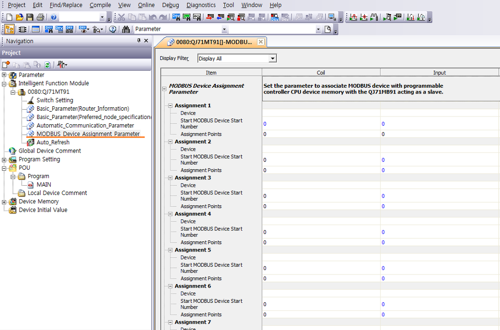 (4) MODBUD_Device_Assignment_Parameter 셋팅입니다