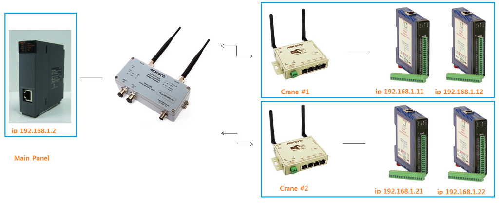 ※ 미쓰비시 MODBUS(이더넷 타입) 모듈과 WITREE 의 무선 중계기와 리모트 I/O를 이용하여