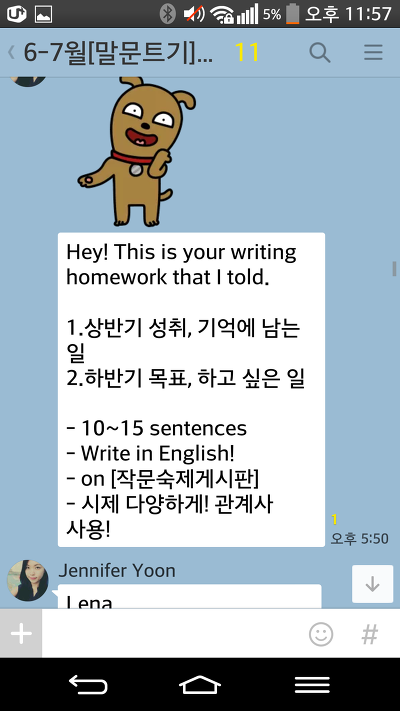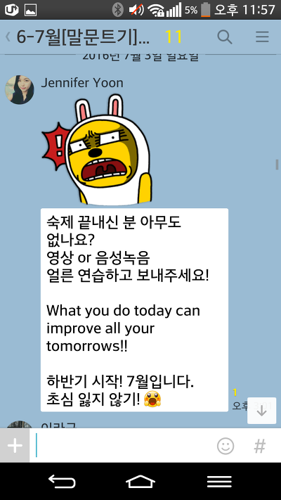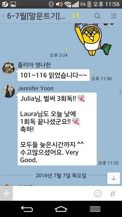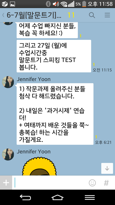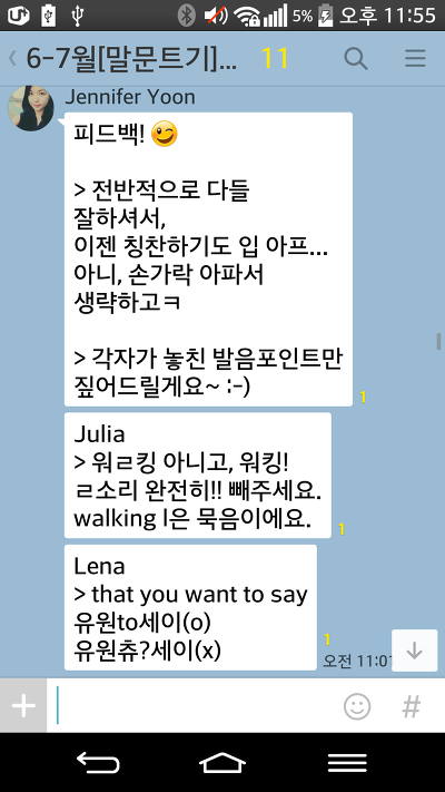 말문트기 끝나도 왠지 단톡방에 글남기고 숙제 어디까지 했어요, 하고 보고해야만 할 것 같네요 ^^;;