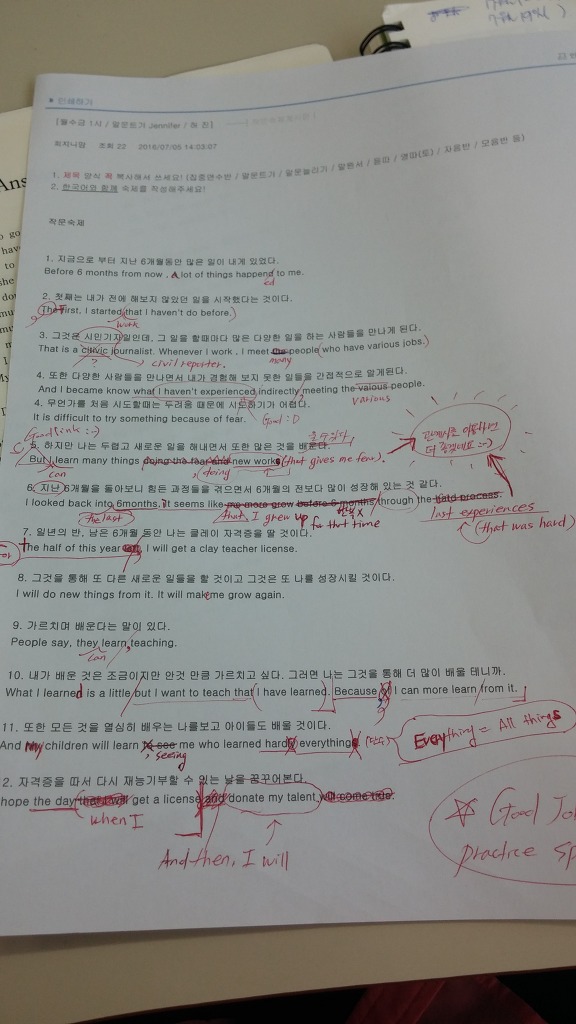 - 거의 매일 과제내주시고 한 명씩 일일이 첨삭하시고