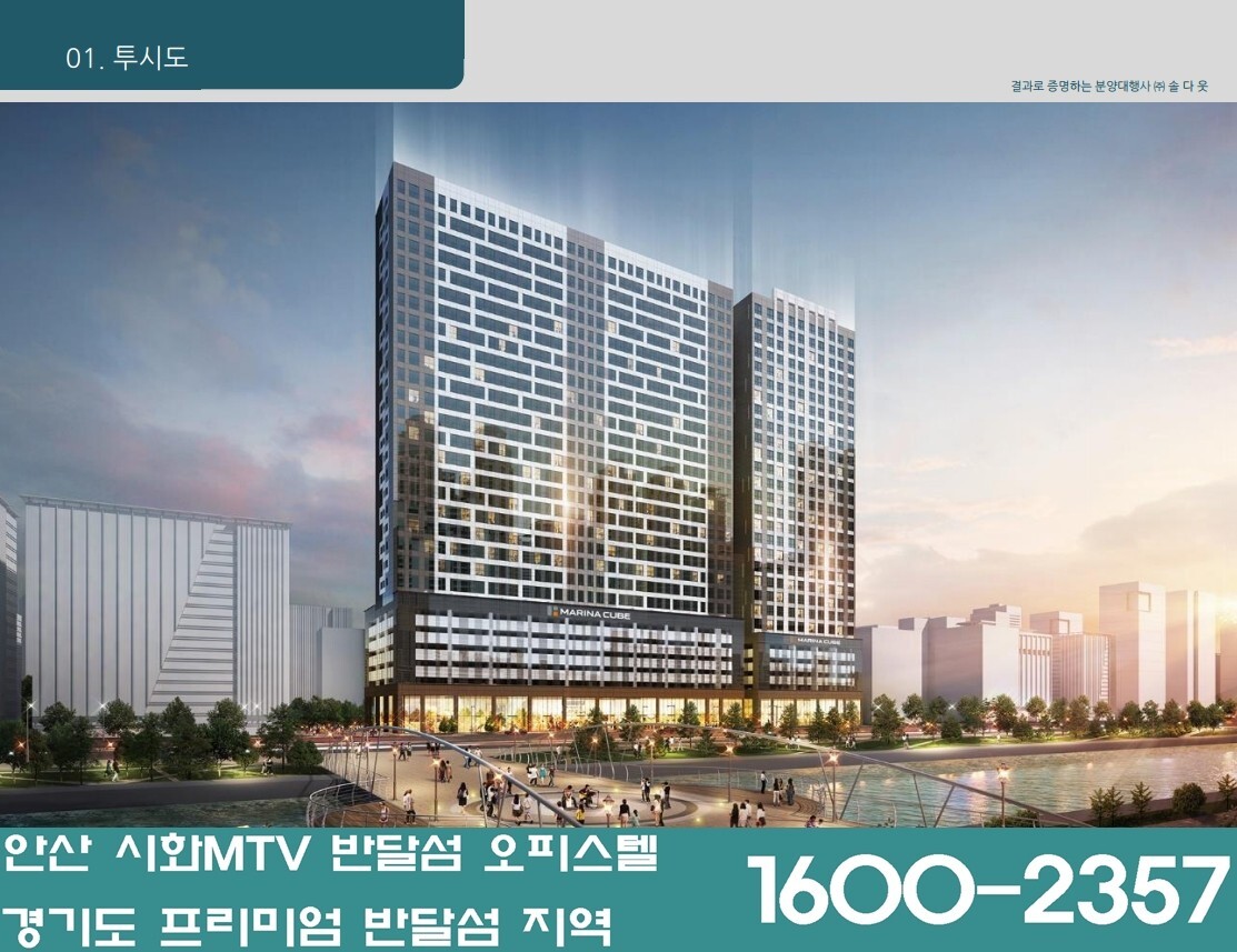 - 시화 반달섬 마리나큐브는 지하 1층에는 5성급 휘트니스센터와 사우나 그리고 하이엔드급 로비 등 럭셔리 커뮤니티 시설을 도입