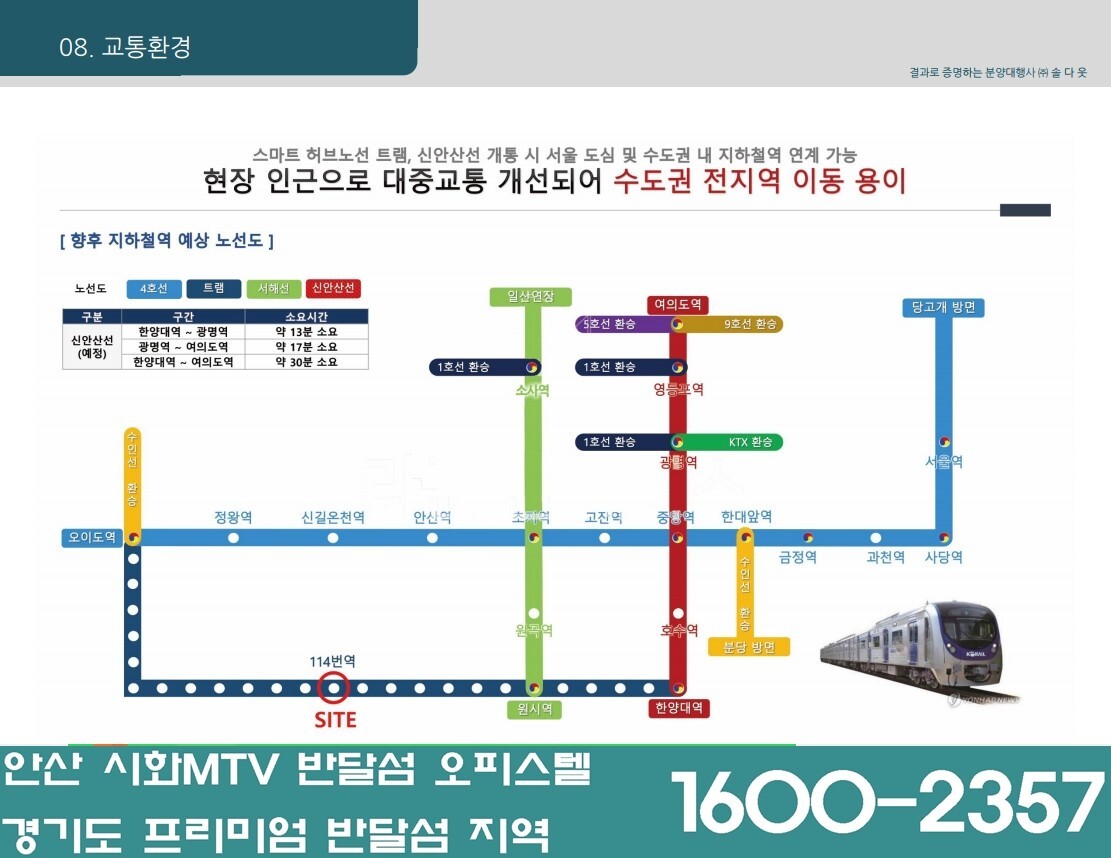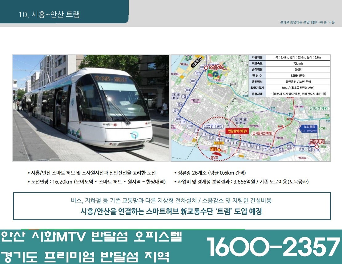 - 오이도역에서 한양대역까지 이어지는 트램을 신규 설치해 이동 수단이 다양해지며 특히 김포공항(안산~김포공항 / 42km), 인천국제공항(안산~인천국제공항 43km)과 인접