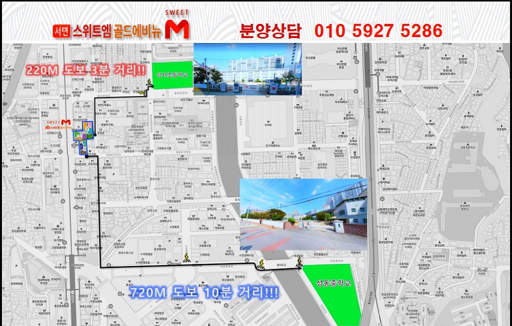 아파트 인근으로 220m 도보3분 거리의 성서초등학교가 가까운 거리에 위치해 있어 어린 자녀둔 학부모님들의 걱정을 덜어 드리고 있습니다 또 720m 10분거리의 성동중학교를 비롯해 아파트를 중심으로 1km 거리에 성동초, 범일초, 좌성초 문현여중 데레사여고 등 초 중 고등학교가 모두 위치해 있습니다 또한 서면 학원가도 도보 이용이 가능한 거리에 인접해 있어 자녀 교육에도 유리한 입지로서 교육여건을 중요시 하는 학부모님의 만족도를 채워드리고 있습니다