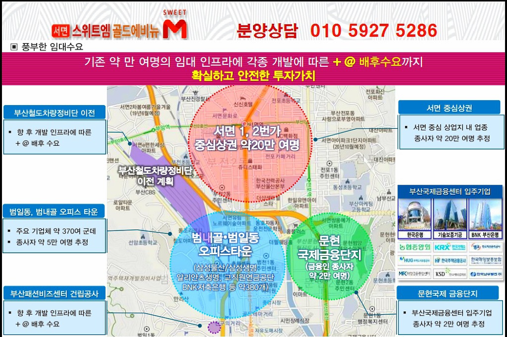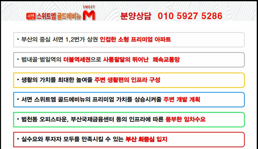 서면생활권에 위치한 지리적 이점으로 편리한 교통과 생활 인프라가 강점인 서면 스위트엠 골드에비뉴는 실주거 생활은 물론 1인 2인가구의 선호도가 높은 전 세대 60이하 소형 으로 49 54 59 로 구성되는 신축 소형 아파트라는 이점으로 투자자들에게도 환영 받고 있다