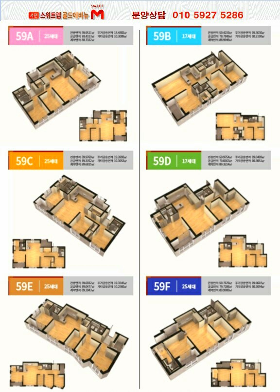 최저분양가는 59c타입이며 최고 분양가는 59f타입 입니다