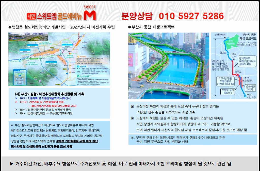 동천재개발 범천동 철도기지개발 사업으로 인해 주거여건개선, 배후수요 형성으로 프리미엄 예상