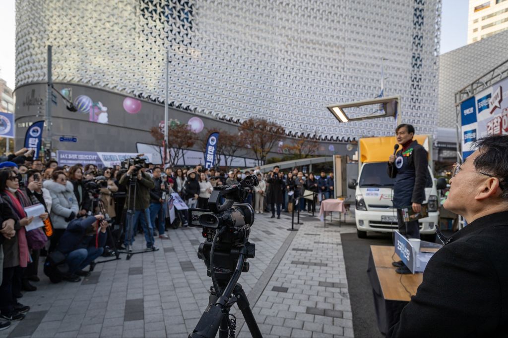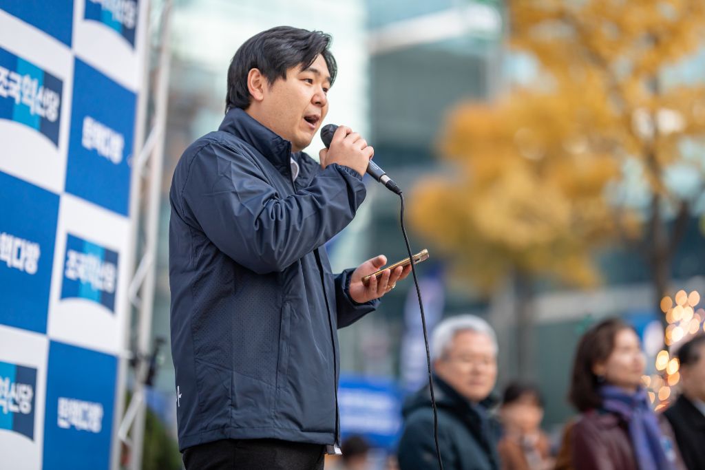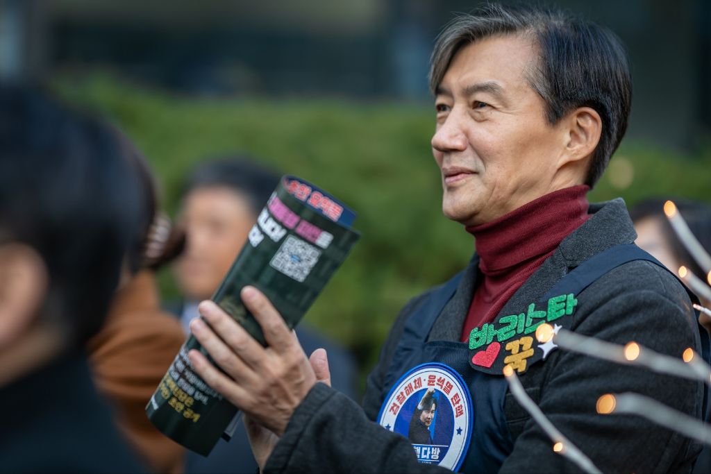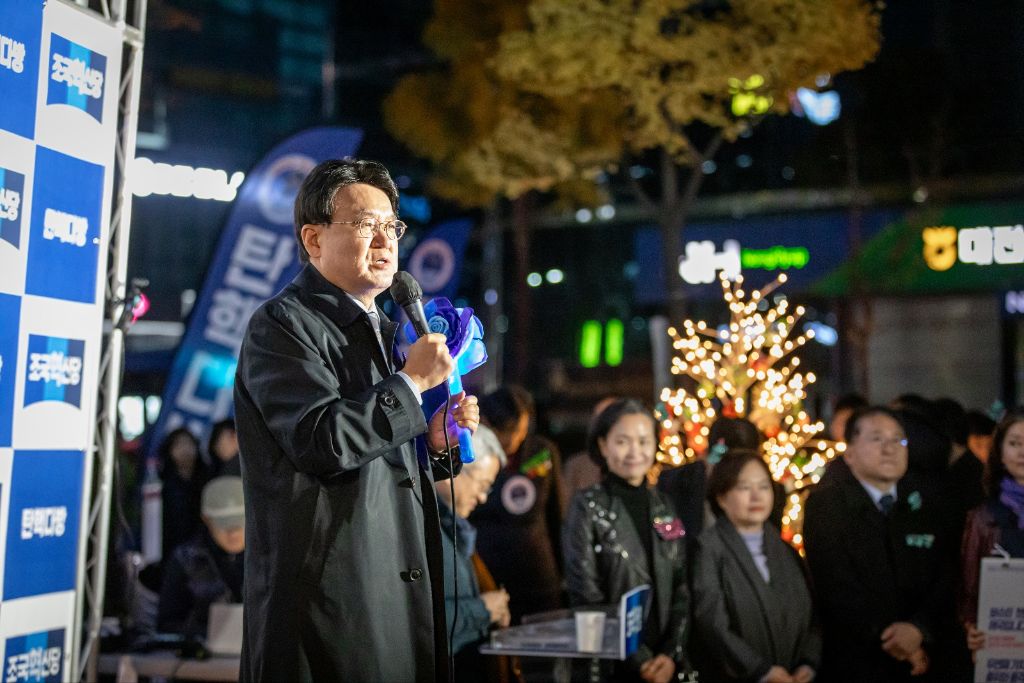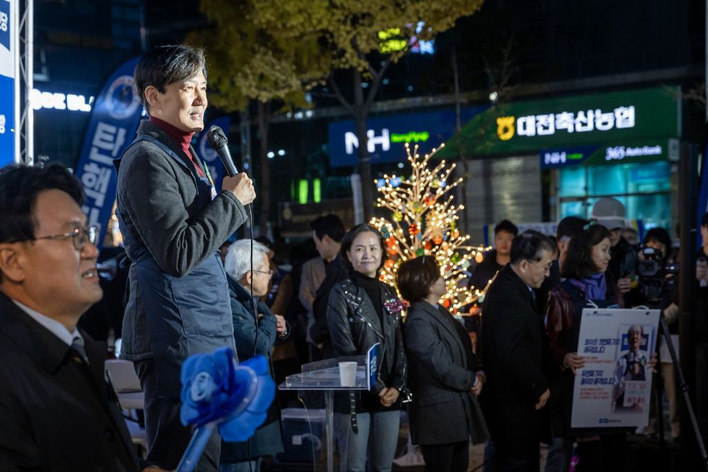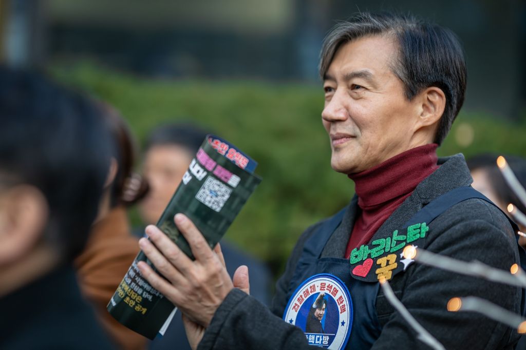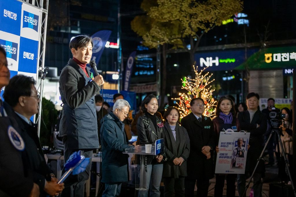 조국 당대표가 홍보전단지를 가지고