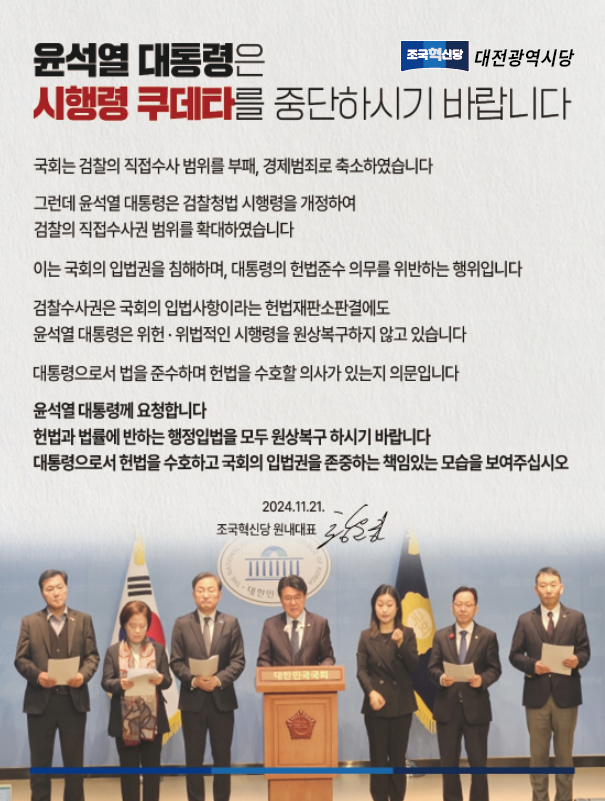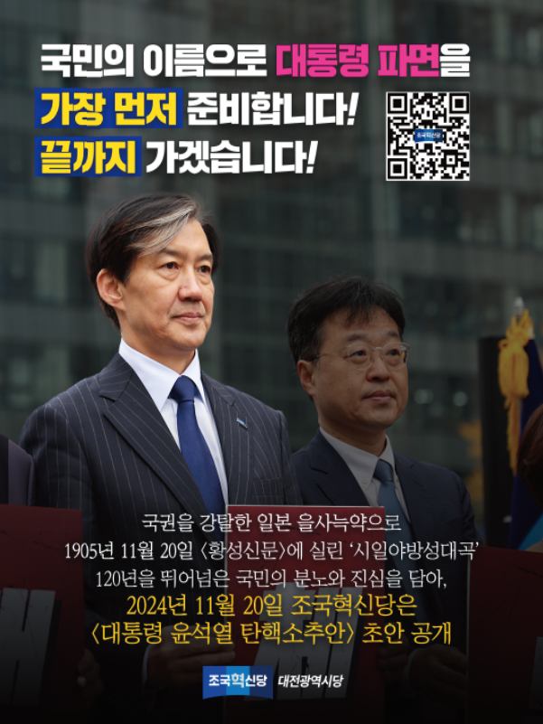 11월 20일에 조국혁신당의 윤석열탄핵소추초안을 발표했지요.