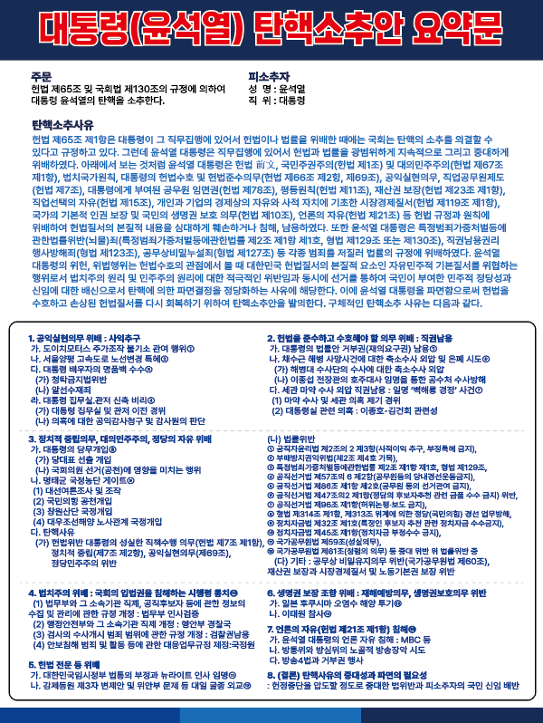 탄핵소추안을 3가지로 만들었지요.