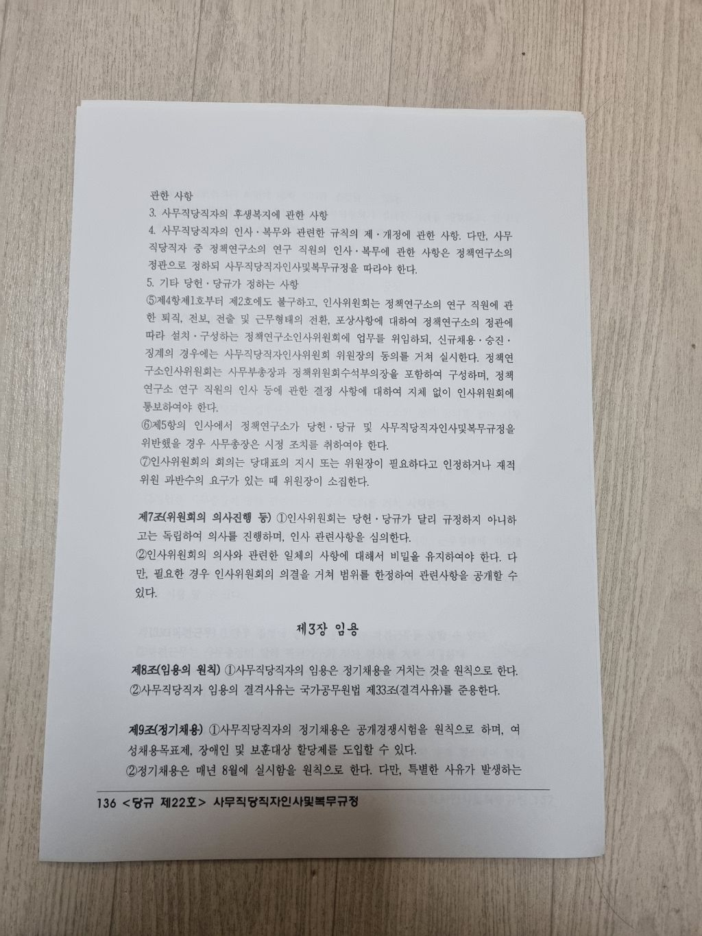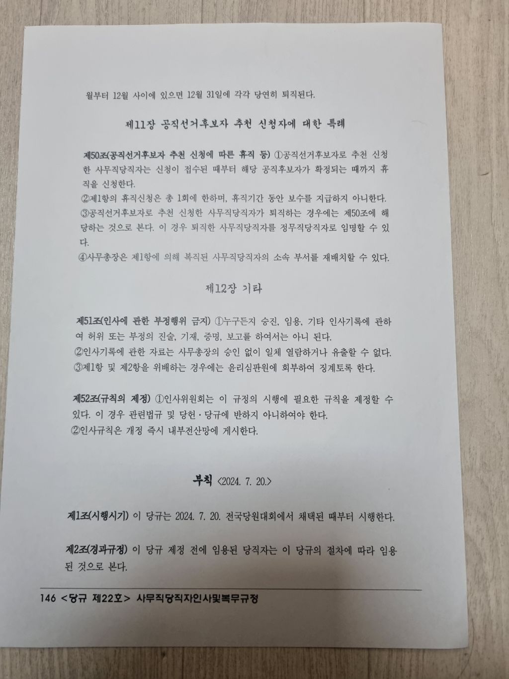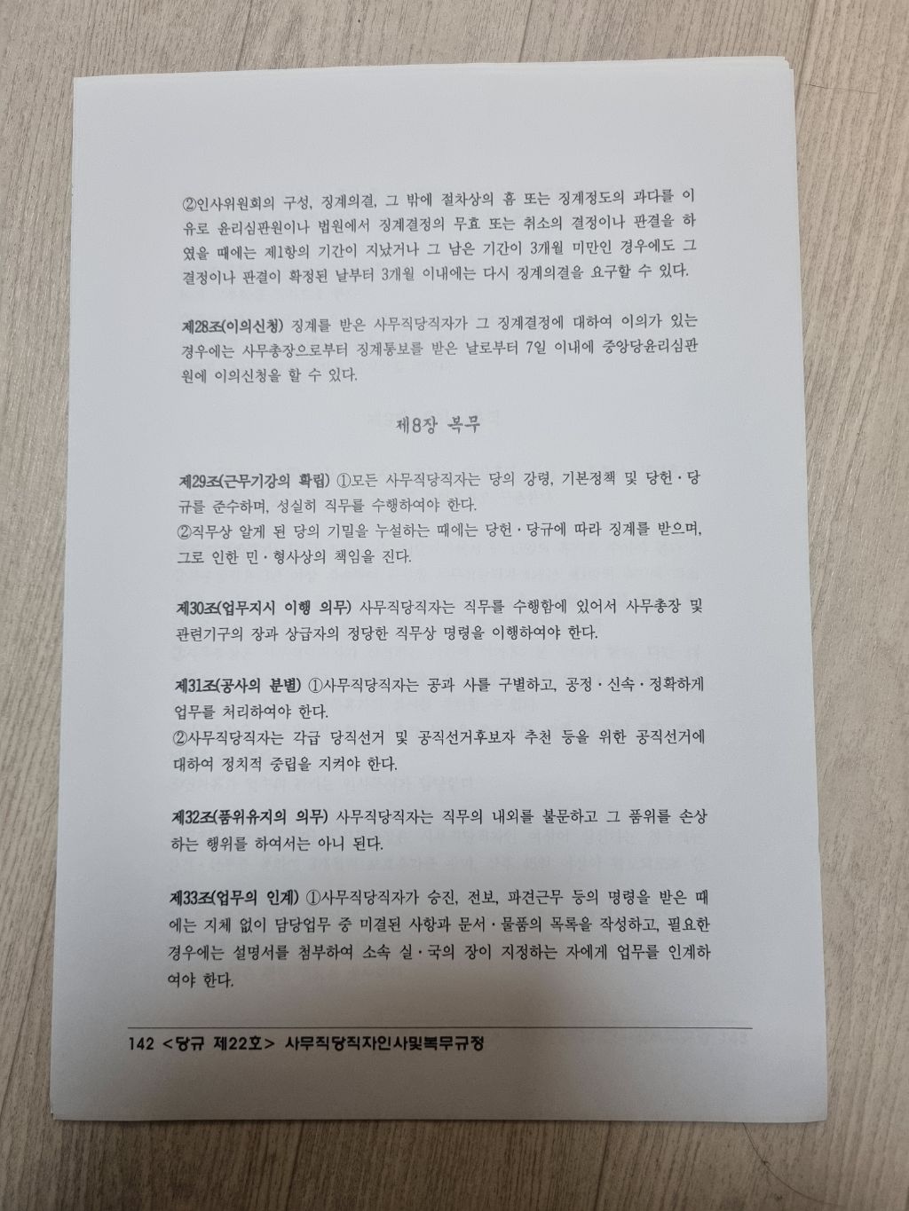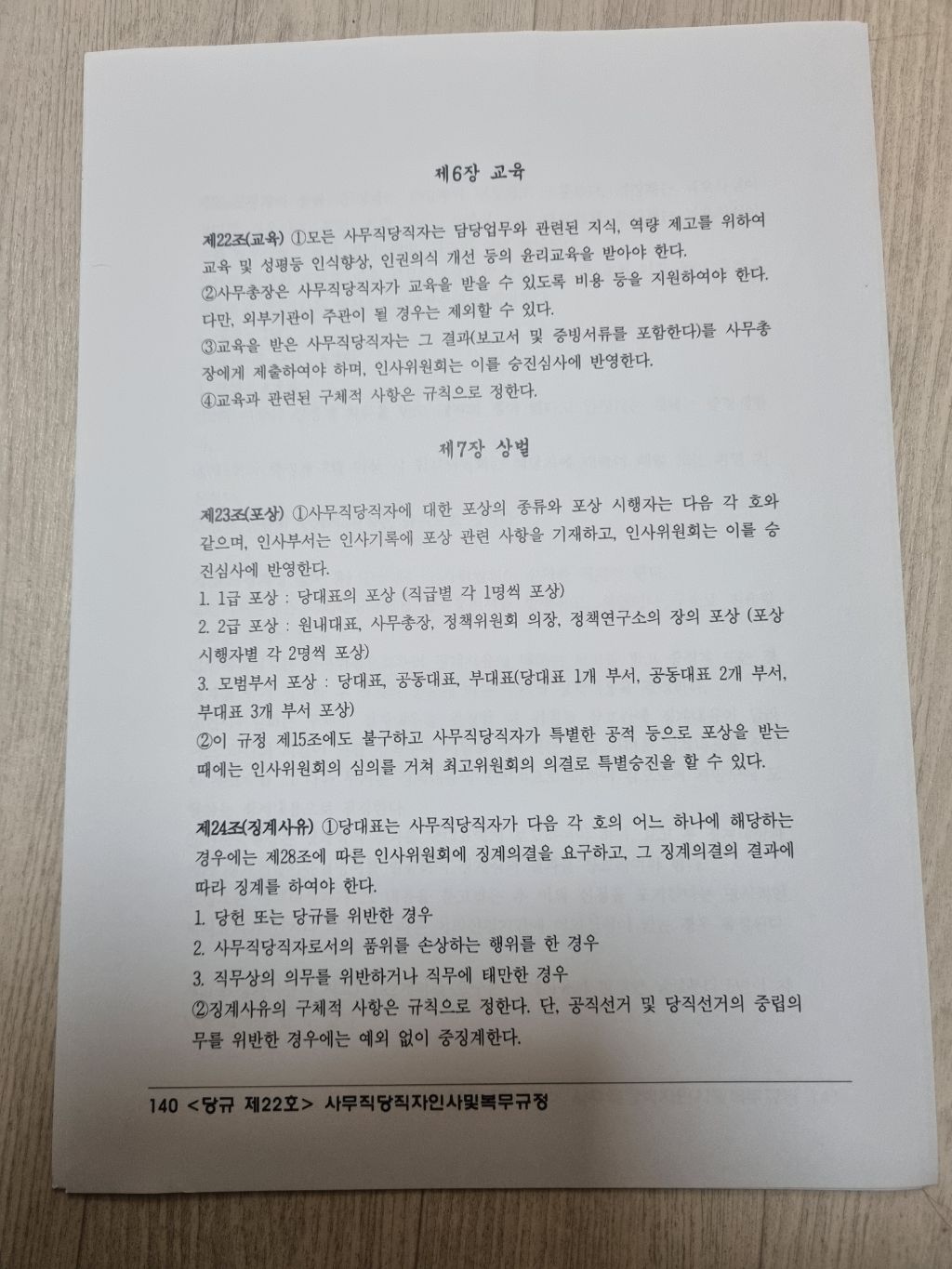 <조국혁신당 강령•당헌•당규> [ 당규22조 사무직당직자 인사및 복무규정 ] 작성자김부장|작성시간24.12.02|조회수52 목록 댓글 0 글자크기 작게가 글자크기 크게가 [조국혁신당 강령•당헌•당규]조국혁신당 홈페이지 https://rebuildingkoreaparty.kr/notice/general-notice/articles/778?page=1조국혁신당 - 조국혁신당 당헌 개정안 / 당규 제·개정안 공지지난 7월 20일 개최한 조국혁신당 제1차 전국당원대회에서 제·개정된 당헌·당규를 공지합니다. *별첨 : [07.20]당헌개정_당규제개정.pdfrebuildingkoreaparty.kr< 당규22조 사무직당직자 인사및 복무규정 > 다음검색 현재 게시글 추가 기능 열기 북마크 공유하기 신고 센터로 신고 댓글 댓글 0 댓글쓰기 답글쓰기 댓글 리스트