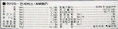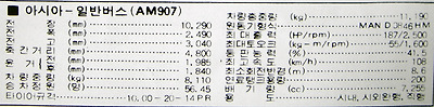 ![]() ![]() 고속버스에 도전하는 현대의 야심작인 RB635버스입니다. 큼직한 덩치덕분에 고만고만한 버스들이 가득하던 터미널에서 쉽게눈에 띄던 버스이기도 합니다. 개인적으로 좋아하는 버스이지만 아쉽게도 노선버스엔 타본적이 없었습니다. 언제나 그러하듯 지나날의 기억에선 충청도 양계곡에서 충일여객이 운행하던 우렁찬 엔진소리만이 이 버스에대한 멋진 기억의 처음이자 마지막입니다. ![]() ![]() 고속버스에서 날린다고해서 시외버스에서도 날리지 못했던 독점과는 좀 거리가 멀던 시절의 일반형 아시아버스입니다. 이버스에 대한 기억도 80년대 중반 부천에서 영등포를 오가던 시외버스를 마지막으로 별다른 기억은 없습니다. ![]() ![]() 카타로그를 올리면서 한가지 재밌는것을 알았는데 현대나 아시아나 엔진은 만(MAN)엔진뿐입니다.