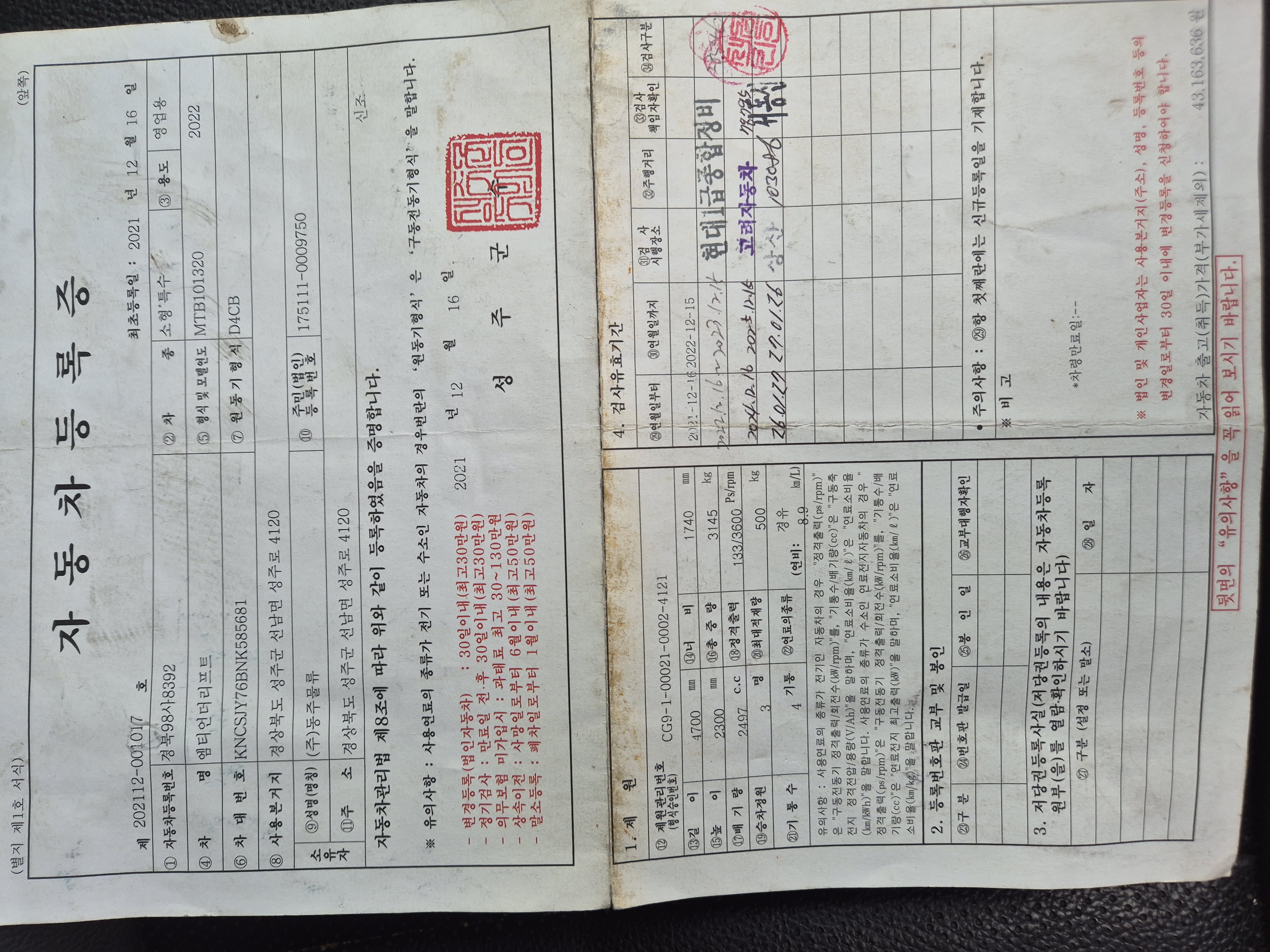 사고내역:모름(차주분과 상담)