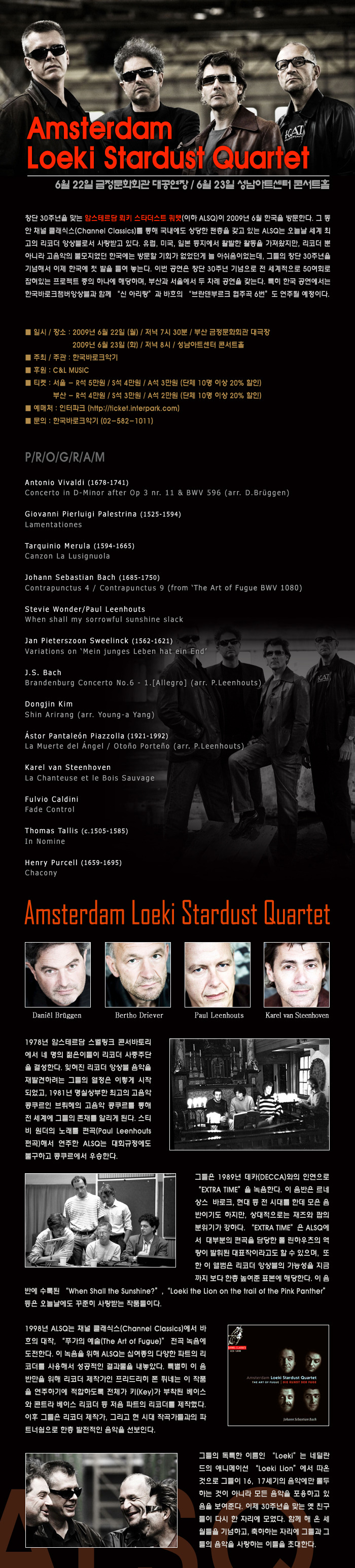 작성자tinaj 작성시간 09.06.12 안녕하세요, 태영이 엄마예요. ALSQ 연주자들 내한한다는 소식듣고 언능 예매했는데, 태영이가 마스터클래스 있을지 물어보네요. 마스터클래스가 있다면 신청하고 싶습니다.일간 한번 태영이가 전화드릴거예요.