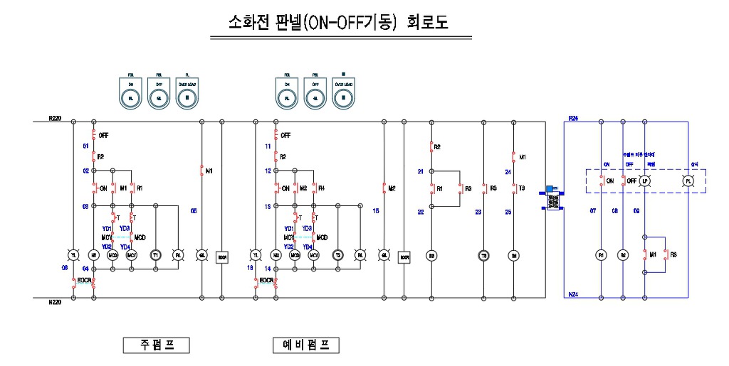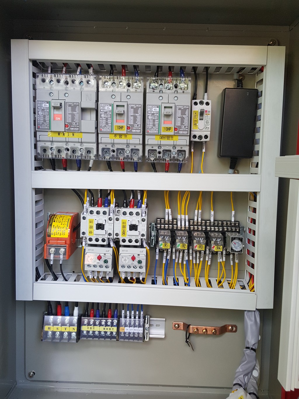 1. 판넬 구성 : 온오프 기동방식 & 동일 판넬 내 주펌프/ 예비펌프 구성