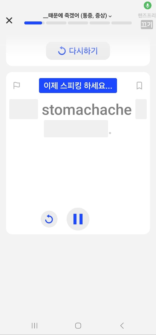 '오늘의 수업'에서는 맨 처음에 강사 분이 공부할 표현을 제시해 주시고, 처음에는 그대로 따라 말하다가 나중에는 빈칸을 뚫고 생각나는 대로 말하면서, 표현에 익숙해질 수 있게끔 도와요.