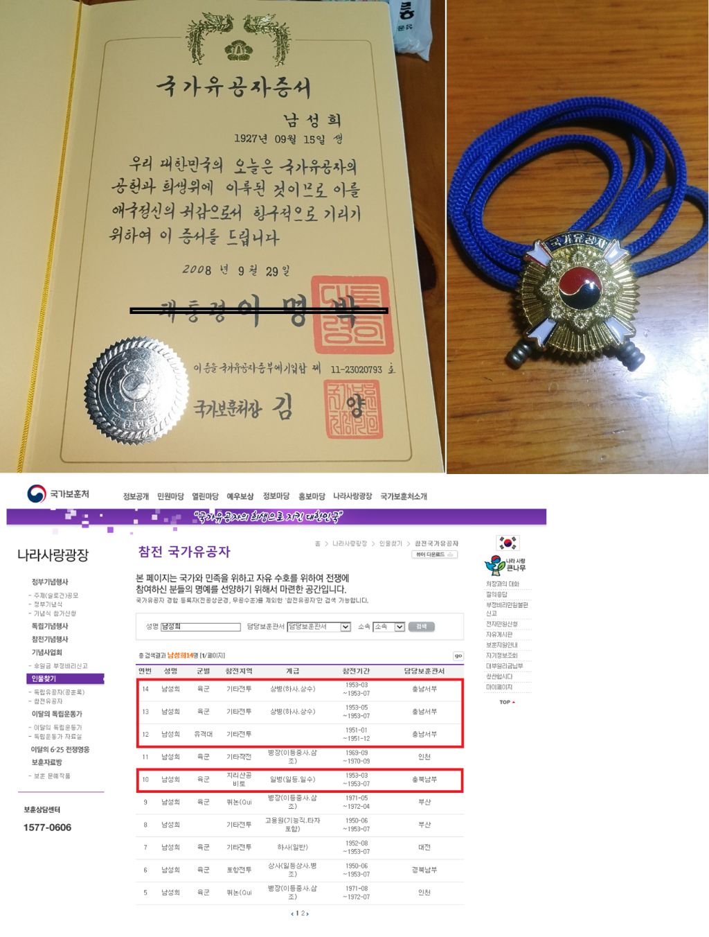6.25전쟁참전 국가유공자 남성희