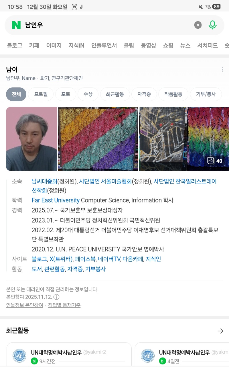 네이버가 해킹당했다. 내프로필사진3장이 지워지고, 대표프로필 사진과 그림작품 20개가 등록안된다. 당장 복구시켜라. 부정부패 신고하고 훈장받고 진급해라. 국가는 그대들을 믿는다.