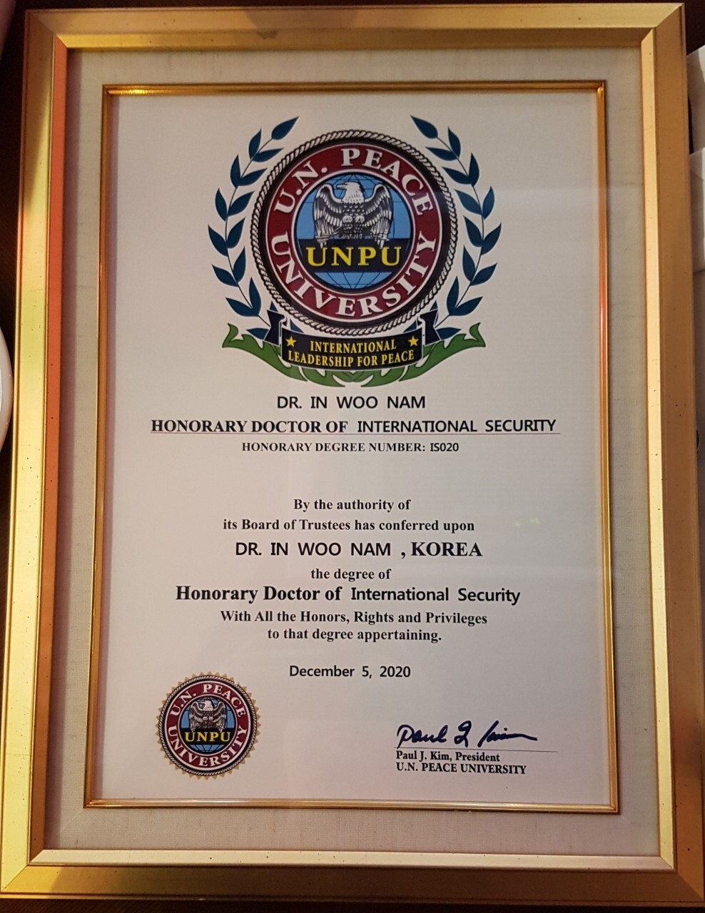 U.N.대학원 국가안보 명예박사 남인우