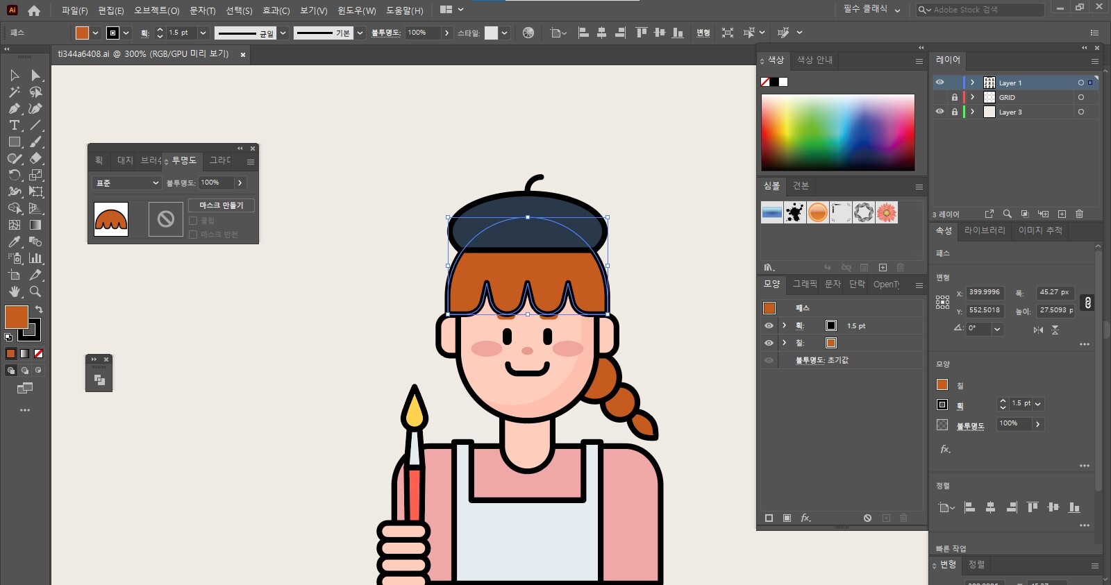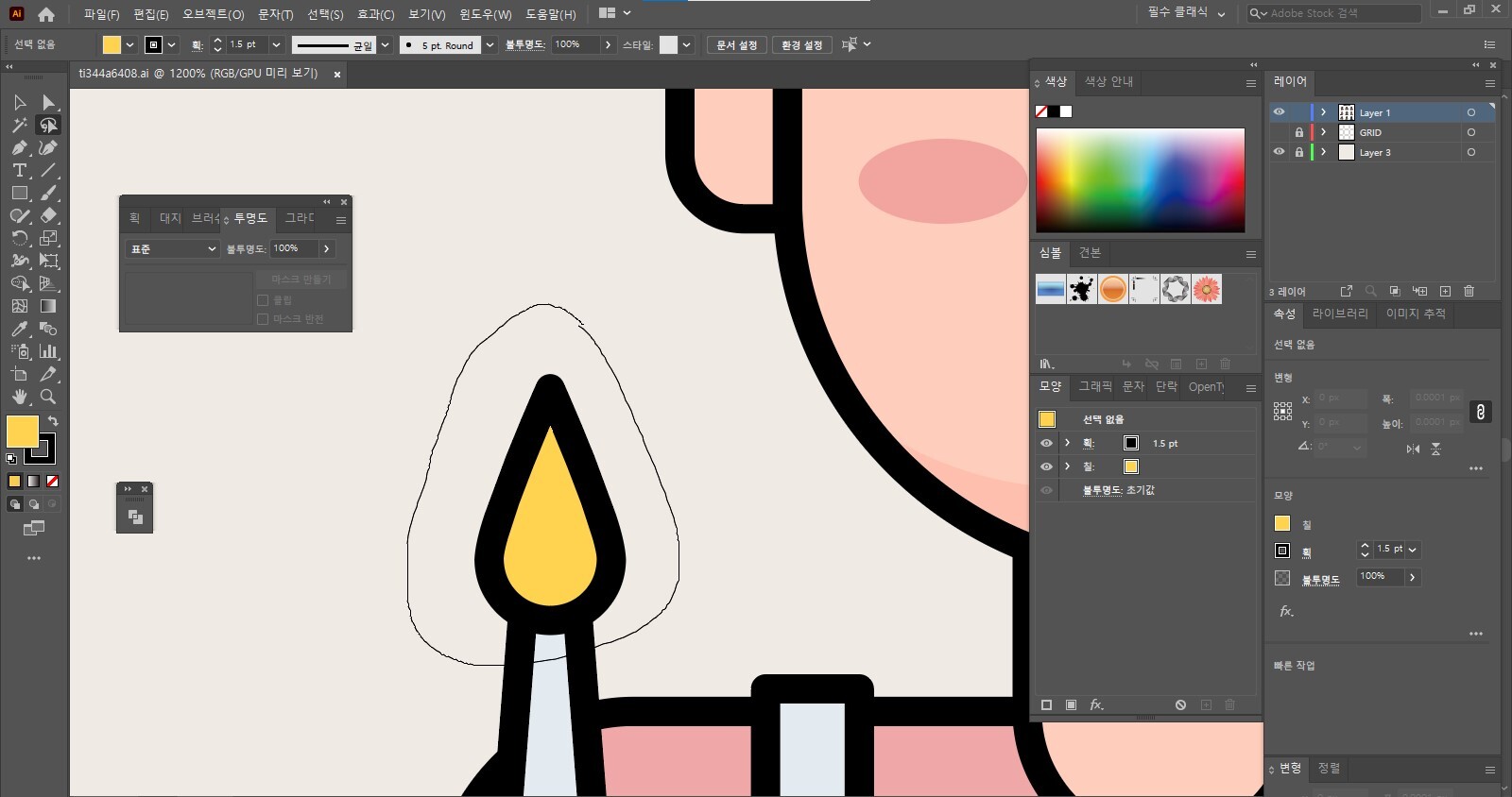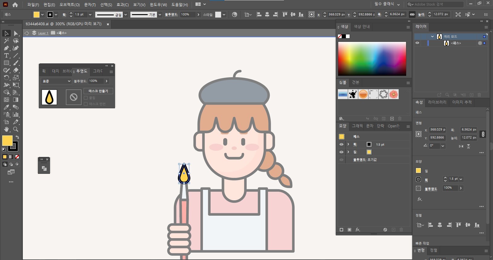 아트웍을 편집하기 위해서는 먼저 자신이 원하는 아트웍을 선택해야 합니다. 오늘은 유사한 모양 속성을