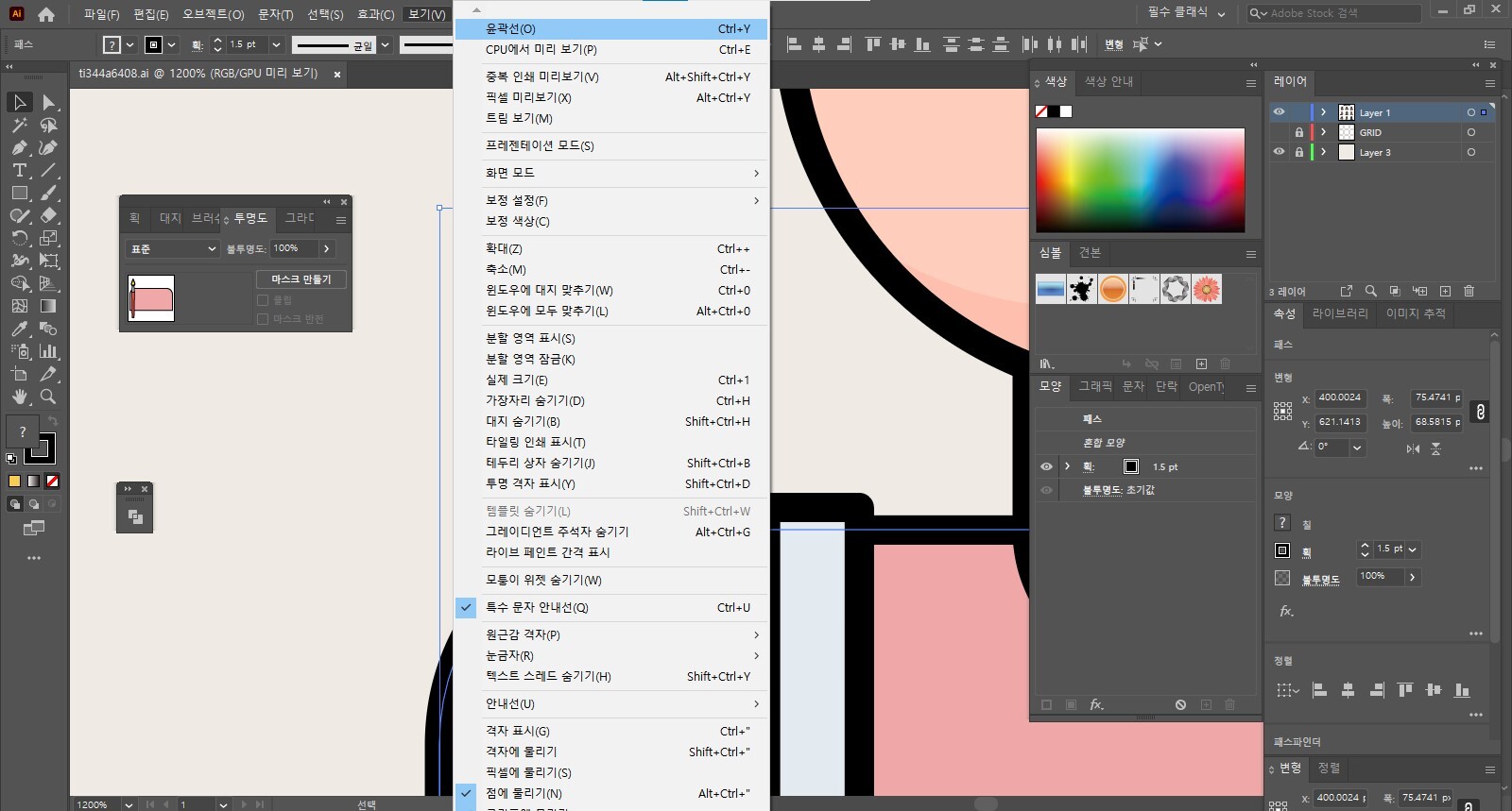 윤곽선 모드로 보다 손쉽게 아트웍 선택