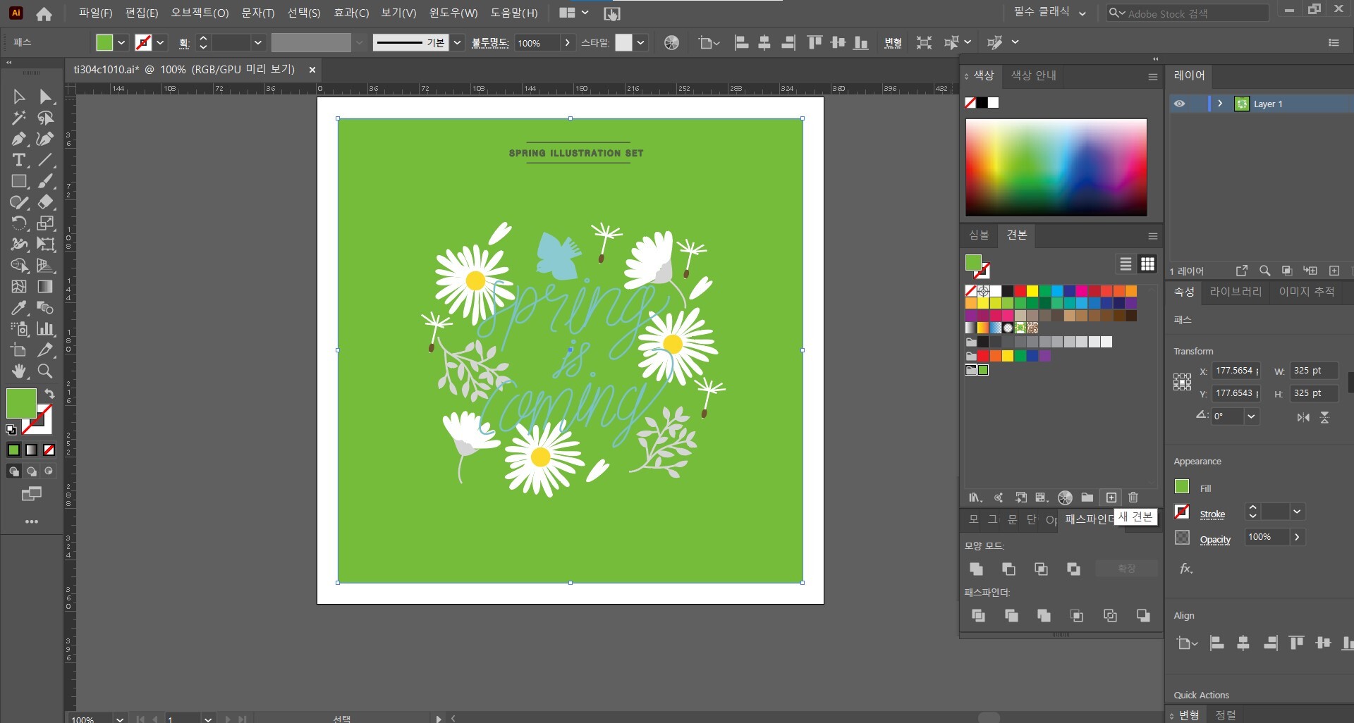 색조를 만들 수 있습니다. 만든 견본을 아트웍의 칠 또는 획에 적용합니다.