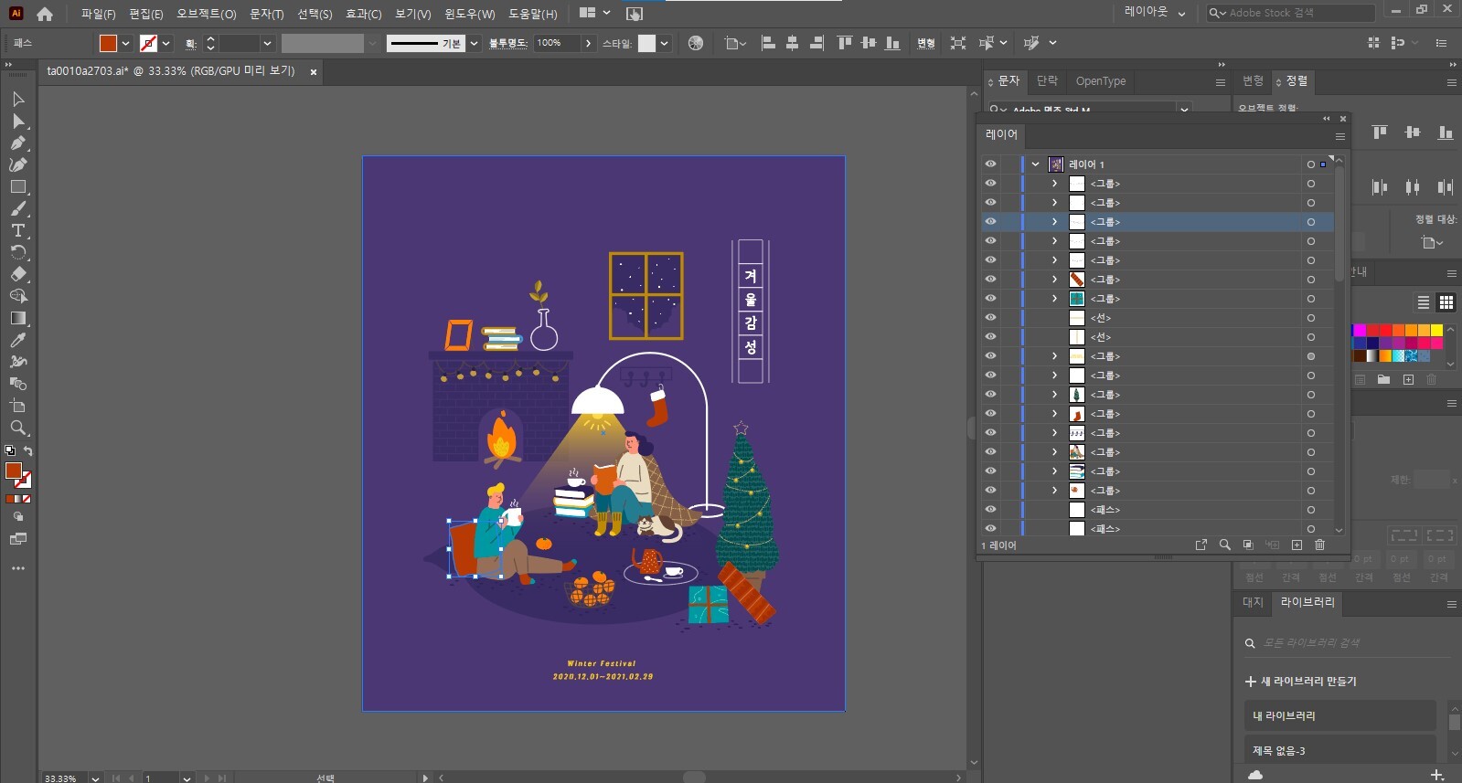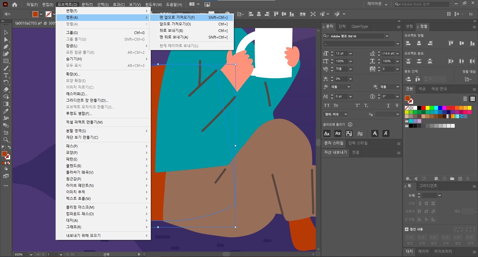 Illustrator에서 만든 아트웍은 추가할 때마다 한 오브젝트가 다른 오브젝트 위에 스택을 쌓이게 됩니다.