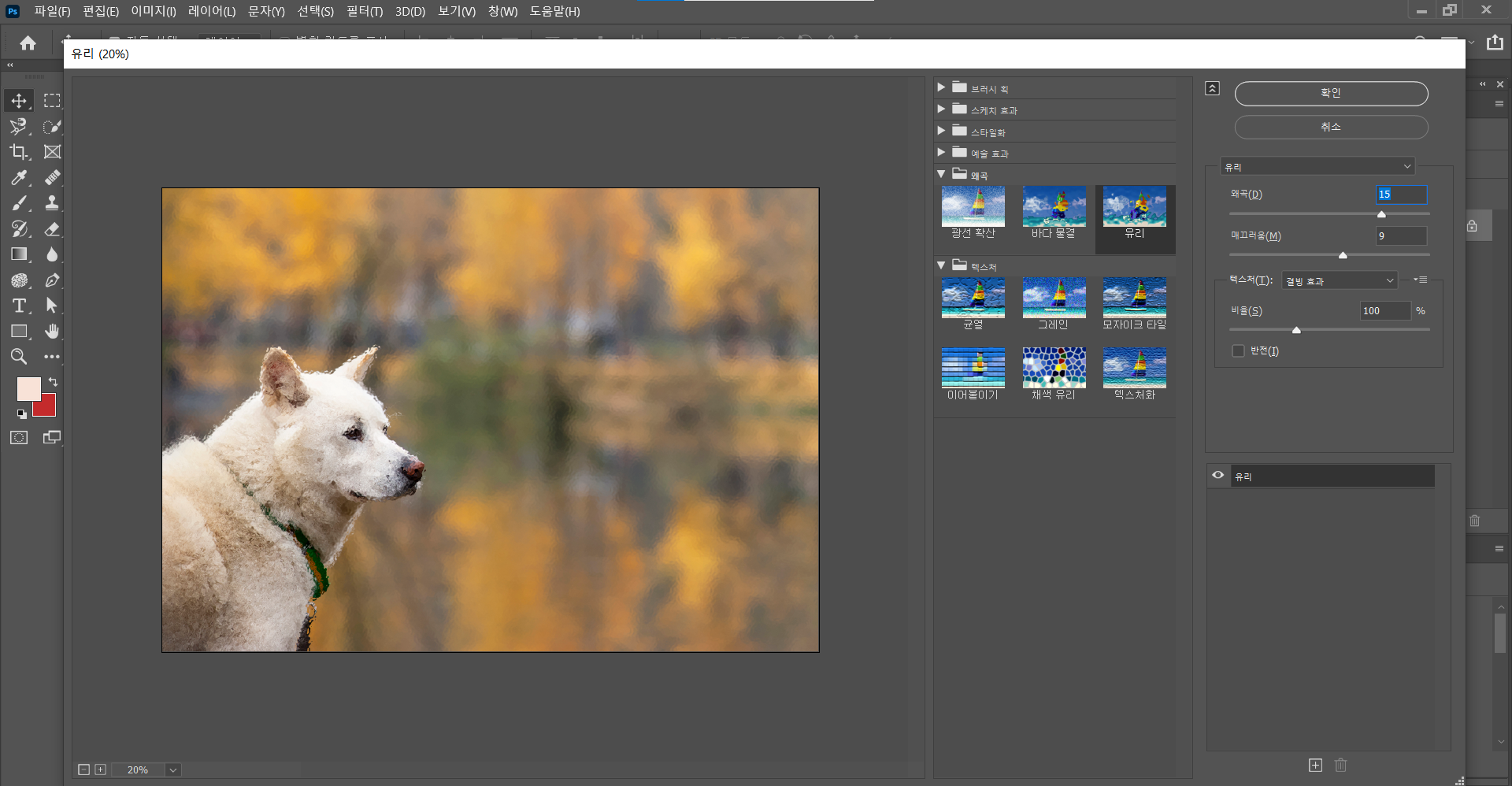 유리 같은 느낌으로 이미지를 왜곡 시킬 수 있는 효과입니다.