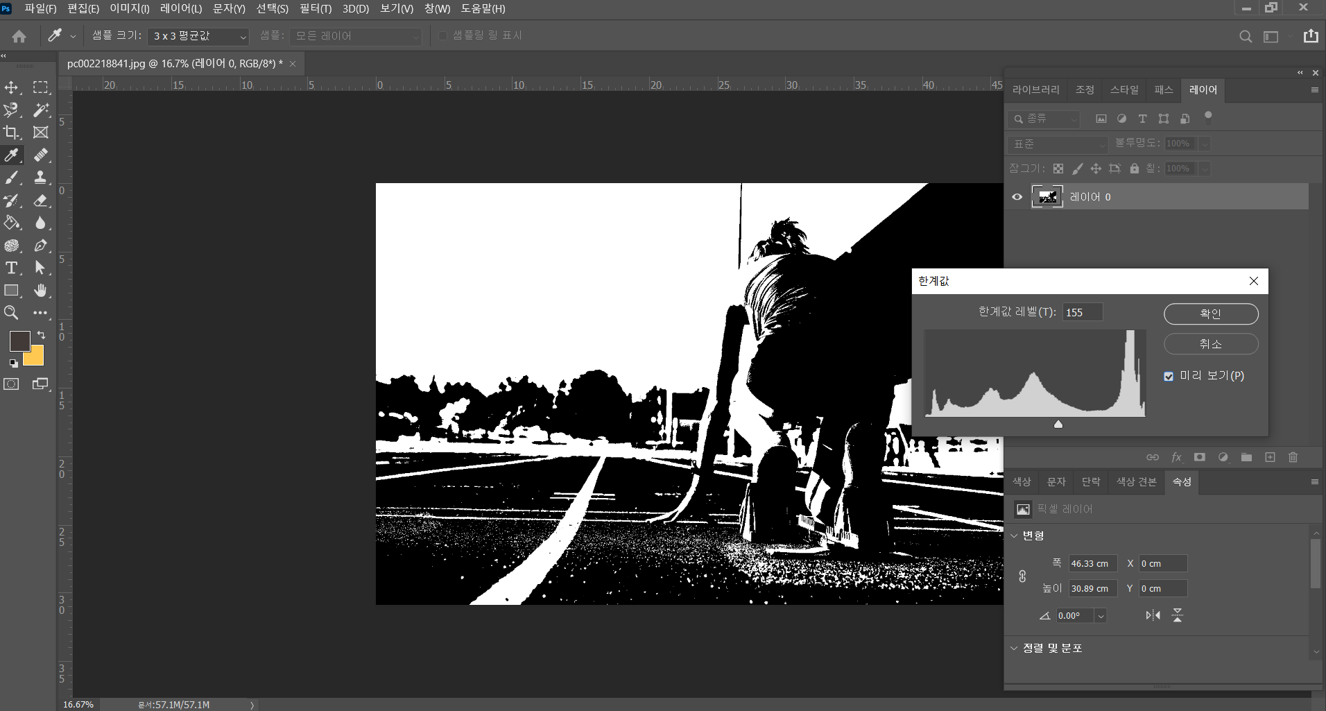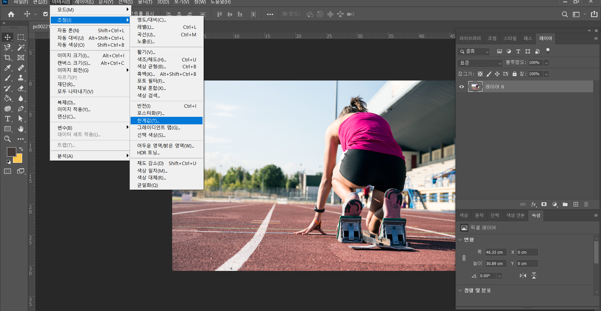 이미지 칸에서 조정-한계값으로 들어가면 됩니다.