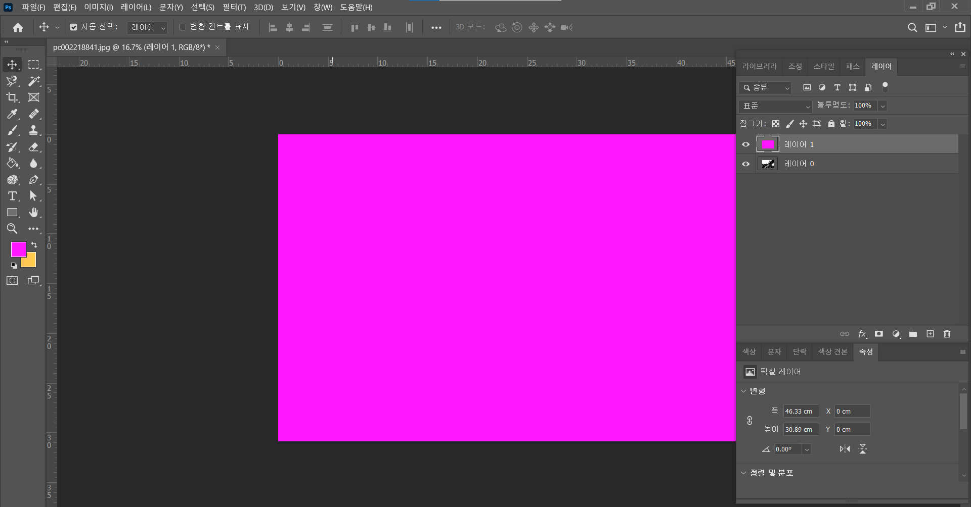 전경색으로 원하는 색으로 바꾼후 [Alt]+[Delete]를 눌러주시면