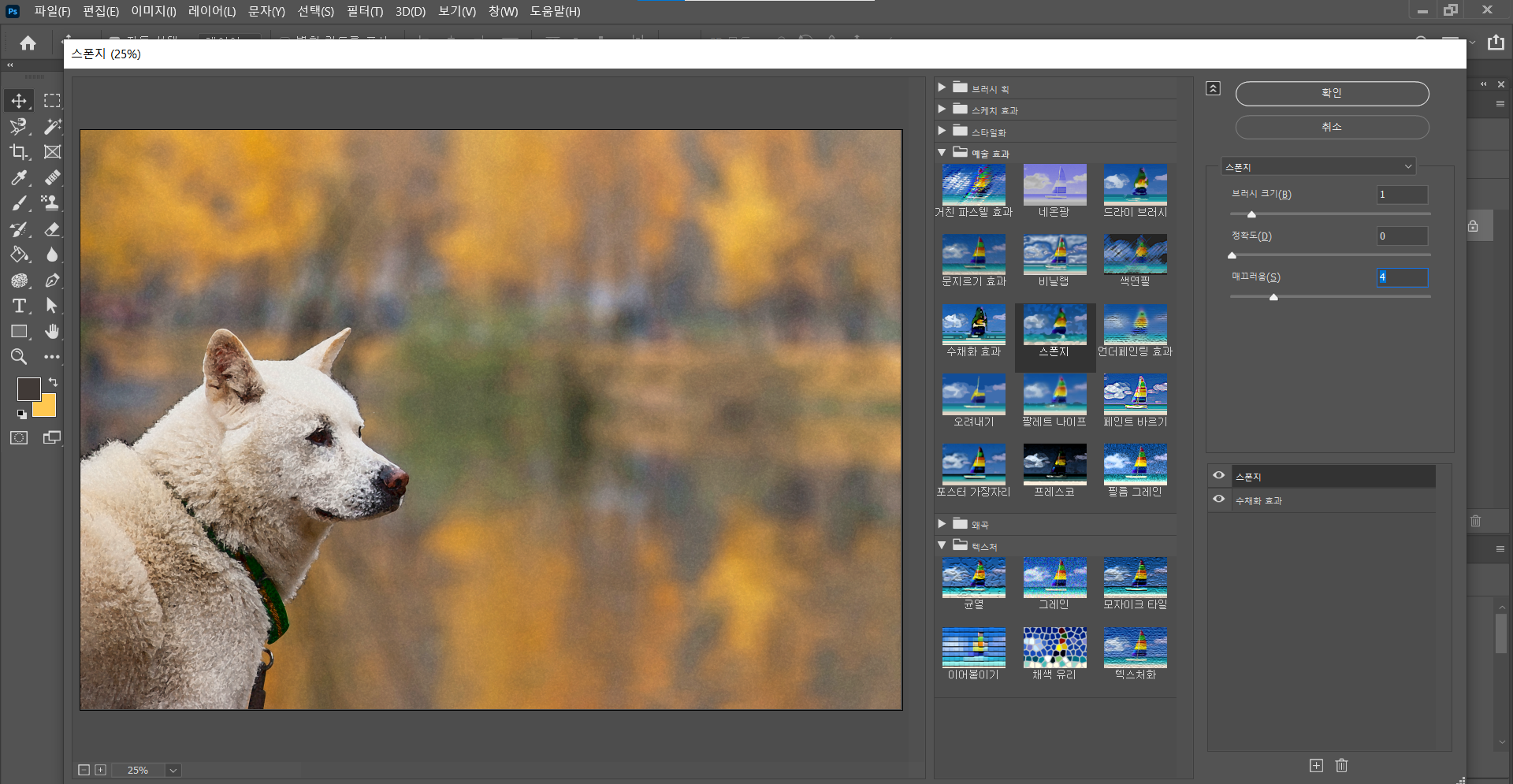 추가하신 다음 마찬가지로 예술효과 칸에 있는 스펀지(Sponge)필터를