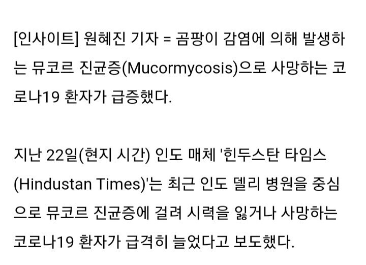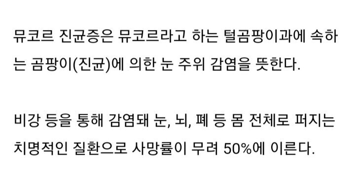 hongo Negro균은 사람에서 사람으로 전염이 일어나지 않는다. 따라서 누군가가 면역력이 약화된 환자들의 비강(코)에 고의로 뮤코르-진균을 고의적으로 쑤셔넣었다는 가설이 설득력을 얻는다.