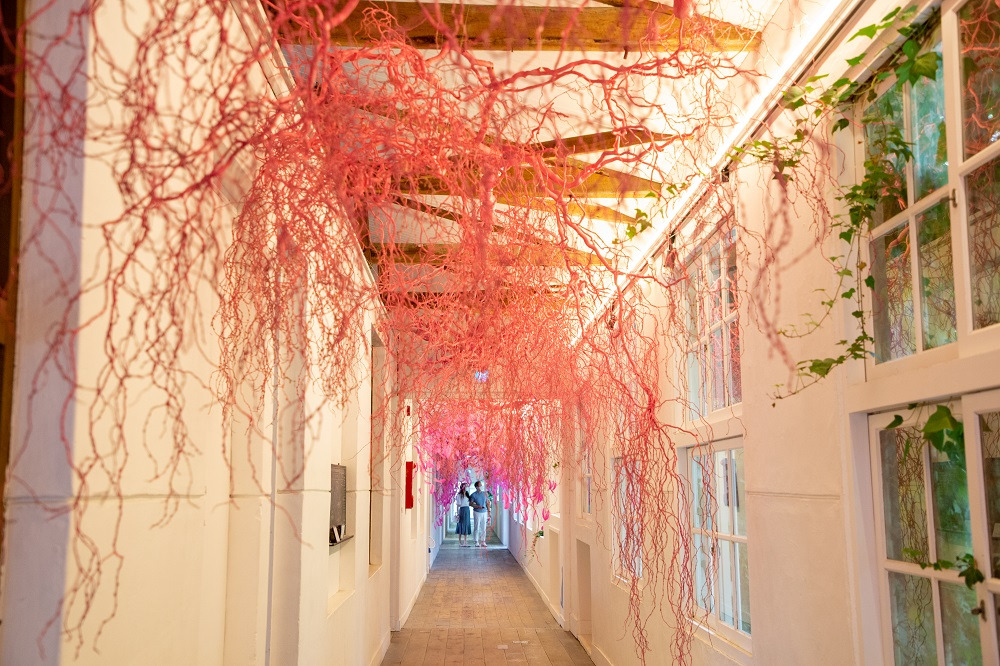 옛날 운동장이었던 야외전시장은 평소 자연학습장으로 활용된다. 파릇파릇 잔디 위에 야외 조각 및 설치 미술을 전시한다. 벤치에 앉아 쉬는 방문객이 있지만 보통 이곳은 고양이들의 차지다. 메인 전시관 뒤편에 위치한 ‘메종 드 아미’는 옛 학교 숙직실과 창고를 활용해 만든 복합문화공간이다. 야외전시장 가장 안쪽에 파란 창틀이 인상적인 카페 지베르니도 있다.