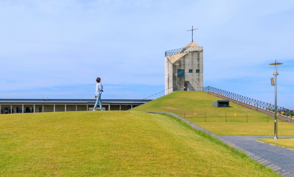 ▶유럽의 야외미술관 같은 카타콤바 신리성지= 합덕읍의 신리성지는 유럽의 어느 야외 미술관에 온 듯한 느낌을 준다. 예당평야가 주변에 속시원하게 펼쳐진 가운데, 예술적인 성당, 잔디밭, 프랑스의 유물들, 습지와 갈대밭 등이 잘 어우려져 있다. 포토포인트에 흰색 집 모양의 쉼터로 마련해두는 등 설계자의 온화함, 개방성도 느껴진다.