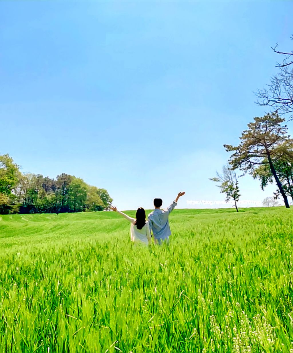 꽃길 사이 봄철 한정판 ‘청보리 밭뷰’