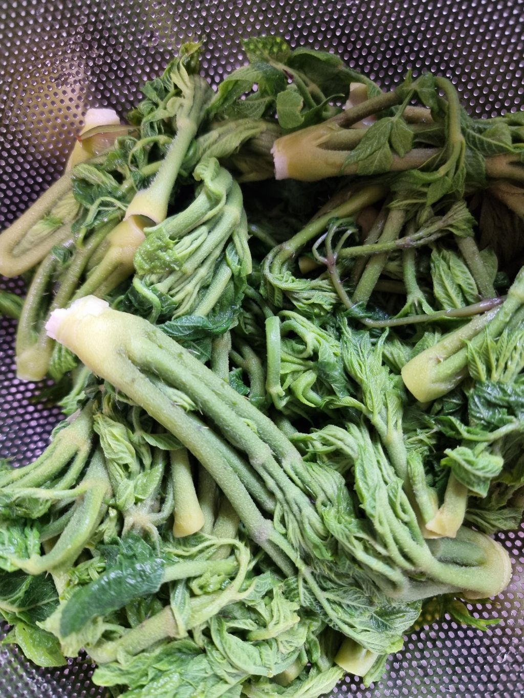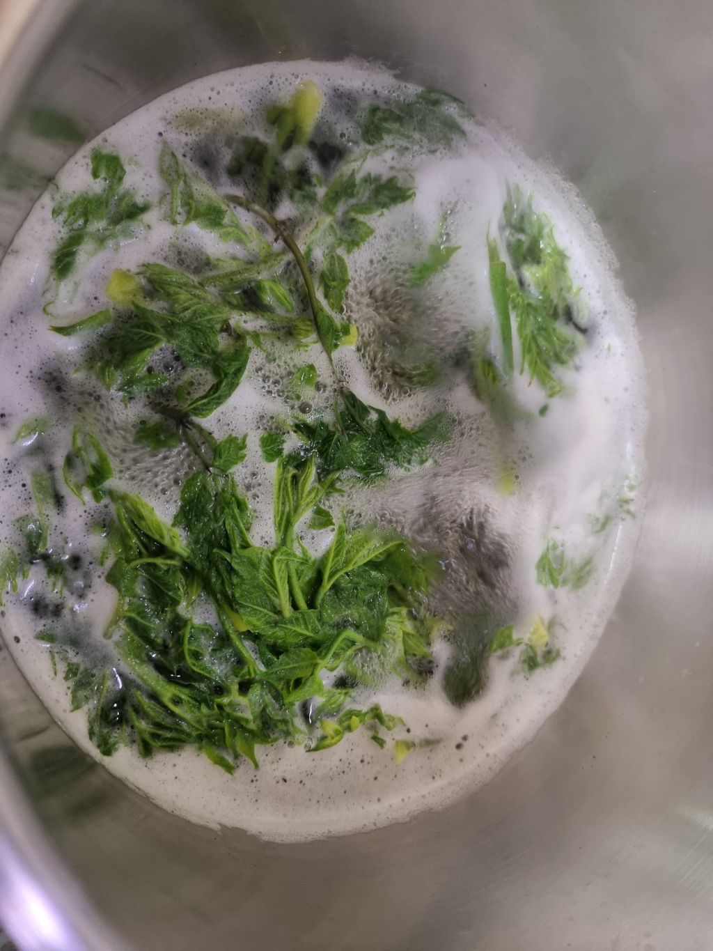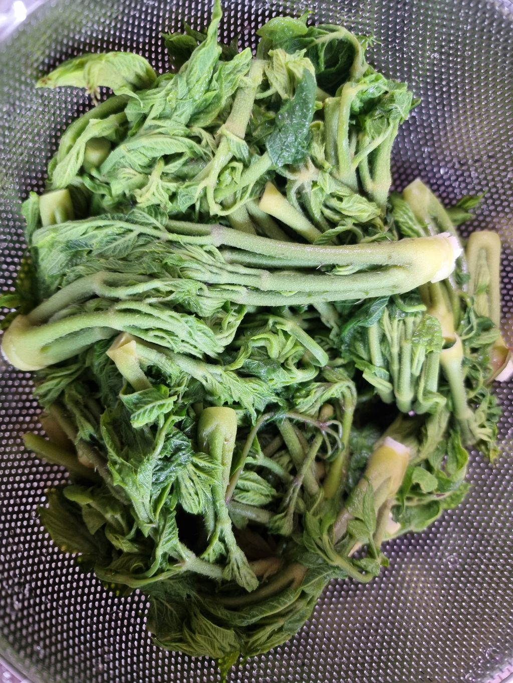 시계 초침이 정직하게 흐르는 4분에서 5분 남짓한 시간 동안 두릅은 뜨거운 물속에서 단단함을 내려놓고 부드럽게 익어갑니다.
