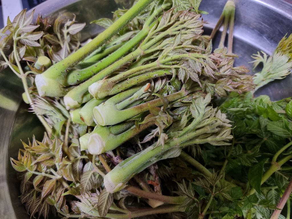 푸릇한 생명력이 가득한 두릅을 손질해 솥 앞에 섭니다.