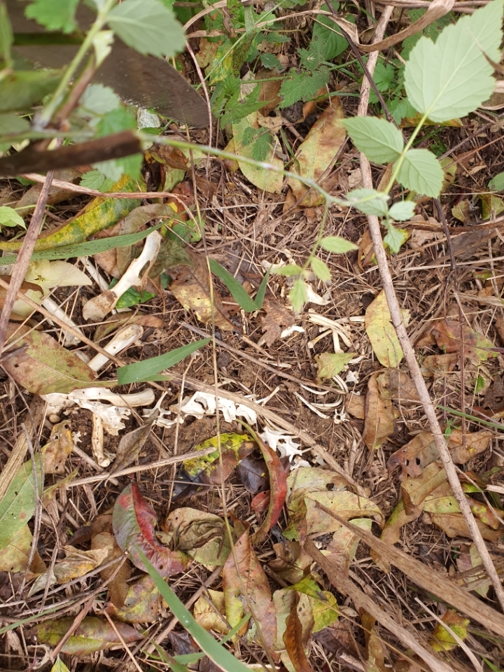 오늘 나무를 좀 잘라내고 정리를 하는데 숲속에서 뼈조각들이 나왔습니다.